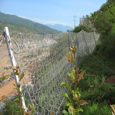 柔性防护网也山体防护网分为主动防护网和被动防护网,一般的主动防护网的尺寸2*2米4*4米4*2米5*6米.5*5米.5*4米.5*3米等规格的矩形、直角三角形(T)(即前述规格形网块的对边平行错动,前述规格为边长)网块,边长负误差不应大于50mm,正误差不应大于一个一个网孔边长,角度误差不应大于5度,施工的时候通过缝合绳链接。