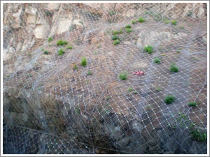 1、经济型:采用主动防护网产品搭配绿色植被防护,这样主动防护网可与植被根系的固土作用结为一体,从而抑制坡面破坏和水土流失,反过来又保护了地貌和坡面植被,实现最佳的边坡防护和环境保护目的。这个搭配方案可用在边坡地形不是很高且有绿色植被生长条件的边坡使用。