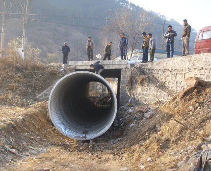 圆管涵的管身通常由钢筋混凝土构成,管径一般有0.5米-3米,管径的大小根据排水要求选择,原多采用预制安装,预制长度通常为 2米。当采用0.5米或0.75米管径时用单层钢筋,而孔径在1米及1米以上时采用双层钢筋,由于施工复杂且涵洞寿命较短,很多地区以选用钢制波纹管涵替代。