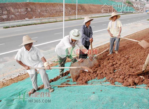 记者近日在合肥市新樊洼路附近看到,园林部门的施工人员给路两旁陡坡处安装护坡网,并进行绿化护坡。此举不但可以绿化环境,也很好地防止地质灾害的发生。