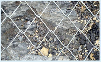 坡面加固,抑制崩塌和风化剥落,溜塌的发生,限制局部或少量落石运动范围,有小块落石或上质边坡时选用。能满足可达100年的防腐寿命要求,但其加固能力仅为70%-80%左右,不适于体积大于1m3的大块孤危石。